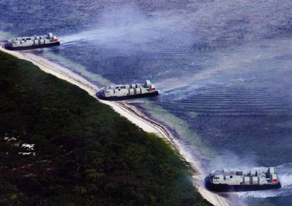 3 tàu đổ bộ Trung Quốc tập trận thực hành chiến thuật chiếm đảo, ảnh: Asia Times.