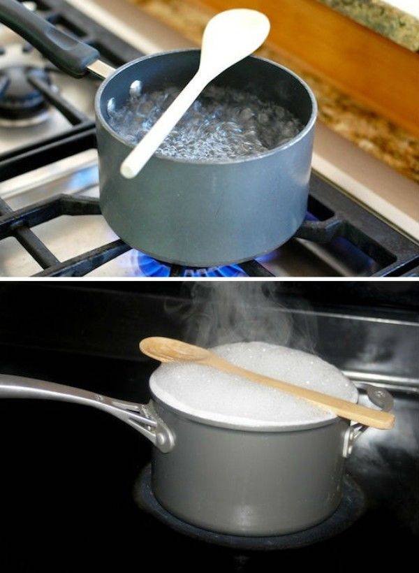 1. Xử lý thức ăn bị cháy bằng cách dùng một chiếc khăn ướt đậy lên nồi hoặc chảo thức ăn bị cháy đến khi chiếc khăn nguội và khô hoàn toàn. Cách này sẽ giúp thức ăn hết mùi khói và mùi khét.