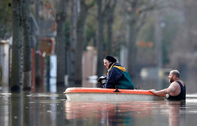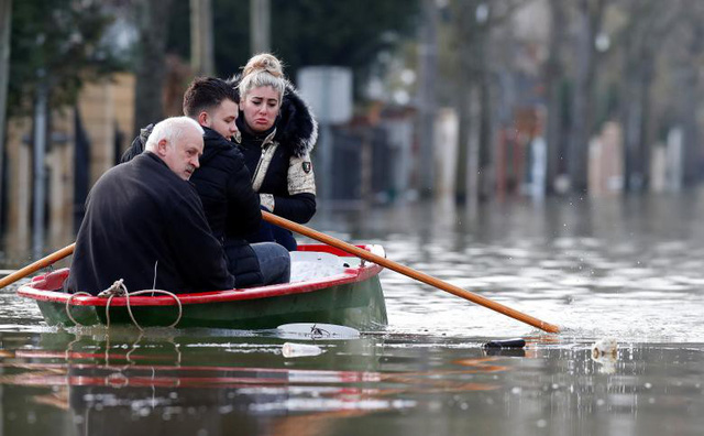 Theo Newsweek, mực nước trên sông Sein ở thủ đô Paris đã dâng cao tới gần 6m vào sáng qua 29/1, khiến 1.500 người phải đi sơ tán. Xuồng trở thành phương tiện di chuyển chính của người dân Paris trong những ngày lũ lụt.