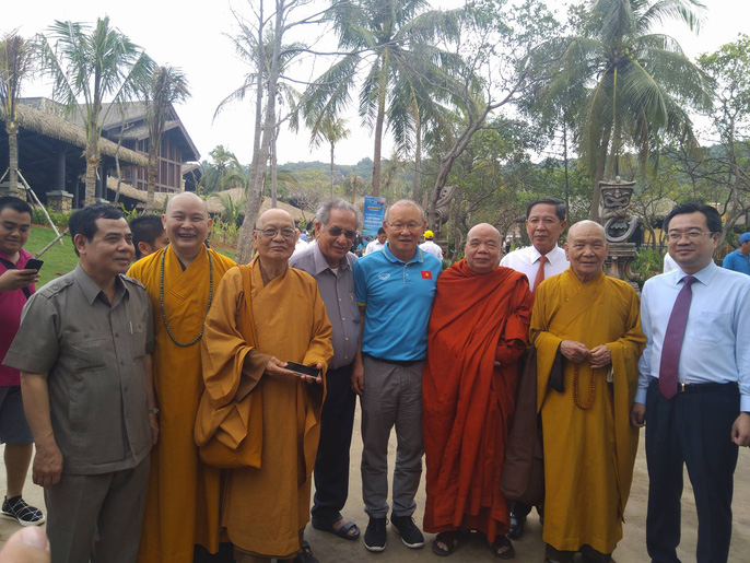 Ông Nguyễn Thanh Nghị (b́a phải), Bí thư Tỉnh ủy Kiên Giang và HLV trưởng U23 Việt Nam Park Hang Seo (giữa) cũng có mặt tại buổi khánh thành cáp treo