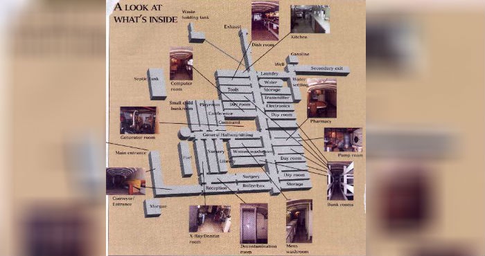 Sơ đồ hầm trú ẩn Ark Two của ông Bruce. (Ảnh: Internet)