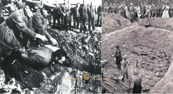 Đến năm 1941, Wehrmacht (quân đội Đức) đẩy lui Hồng quân và hơn một năm sau người Đức đã tìm ra những hố chôn tập thể rải rác trên 3 địa điểm nói trên. Trước lời tố cáo của Đức, Liên Xô phủ nhận hoàn toàn trách nhiệm và quy ngược lại trách nhiệm về phía phát xít Đức. Cần nói thêm ở đây là vì nhu cầu đồng minh với Liên Xô để chống phát xít, Anh và Mỹ đã cố ý cho “chìm xuồng” vụ này trong suốt thế chiến và cả nửa thế kỷ sau đó. Phải đợi đến khi chế độ cộng sản sụp đổ vào thập niên 90 thì tất cả mới được đưa ra ánh sáng với sự hợp tác của ba đời Tổng thống Nga là Yeltsin, Putin và Medvedev. Tháng 11/2010, viện Duma (hạ viện Nga) đã thông qua một nghị quyết tuyên bố rằng tội ác Katyn được tiến hành theo các chỉ thị của Stalin và các quan chức Liên Xô khác.