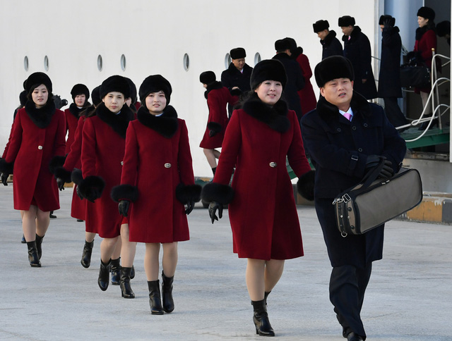 Đoàn nghệ thuật Triều Tiên đi tàu tới Hàn Quốc ngày 6/2 (Ảnh: Reuters)