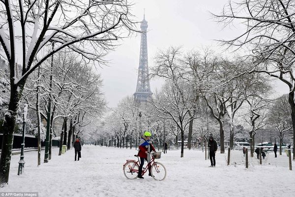 Khi nhiệt độ ở quốc gia này xuống thấp, tuyết rơi dày và tạo thành lớp tới 15 cm. Dù đi lại rất khó khăn nhưng bù lại, người dân được thưởng thức vẻ đẹp như chốn bồng lai của Paris.