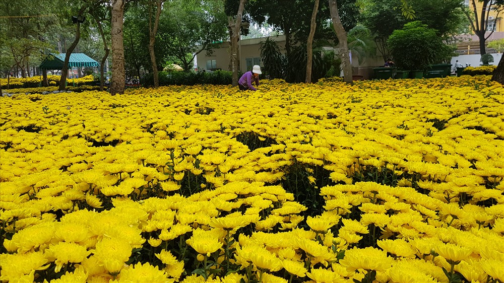 Tại công viên 23/9 (quận 1), lượng hoa từ các tỉnh đổ về khá nhiều nhưng so với mọi năm thì vẫn còn ít. Ảnh: Trường Sơn