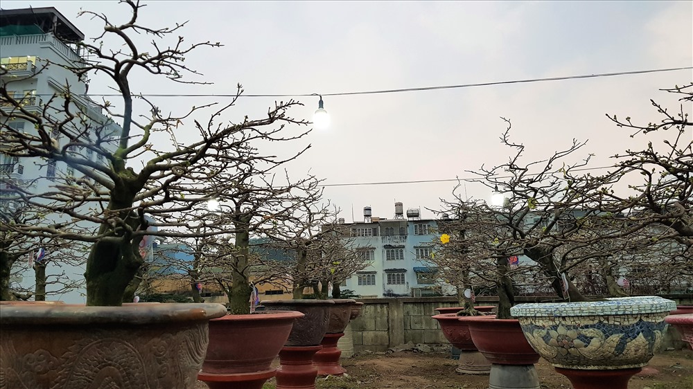 Bên cạnh những cây mai lớn có giá hàng chục, hàng trăm triệu đồng thì các chủ vườn mai cũng tung ra thị trường hàng nghìn chậu mai nhỏ để đáp ứng nhu cầu của số đông người dân thành phố. Tùy theo kích cỡ, độ tuổi, dáng thế mà mai có giá trị khác nhau. Có cây vài triệu nhưng cũng có cây vài trăm nghìn đồng. Trong ảnh là những chậu mai có giá trị cao của một vựa mai lớn trên đường Phạm Văn Đồng. Ảnh: Trường Sơn