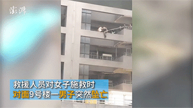 Ngạc nhiên là ngay lúc đội cứu hộ đang tìm cách cứu cô gái trẻ thì một chàng trai đứng tại tầng 9 tòa nhà đối diện đột nhiên ngã xuống đất tử vong, khiến tất cả mọi người có mặt tại đó vô cùng kinh ngạc.