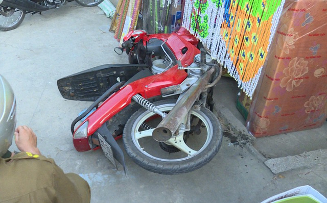 Chiếc xe máy của anh Linh bị trượt ngã tại khu vực chợ.