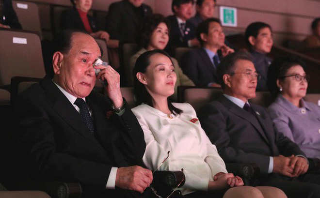 Chủ tịch Quốc hội kiêm trưởng đoàn Triều Tiên Kim Yong-nam bật khóc khi tham dự buổi hòa nhạc tại Hàn Quốc. Ảnh: Reuters