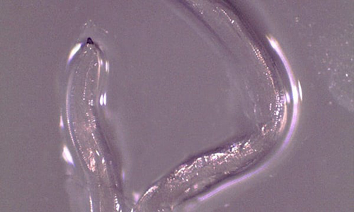 Một cá thể sán cái sau khi được gắp khỏi mắt người. Ảnh: Reuters.