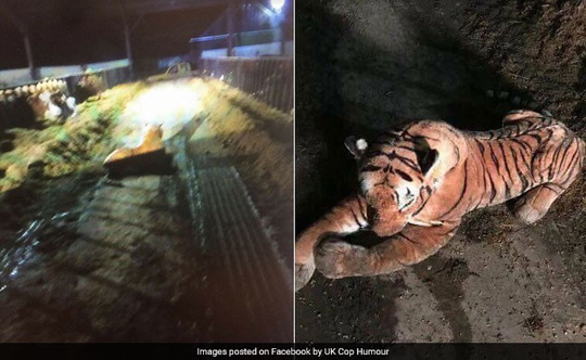 Con thú nhồi bông cỡ lớn bị nhầm tưởng là hổ thật. Ảnh: UK Cop Humor