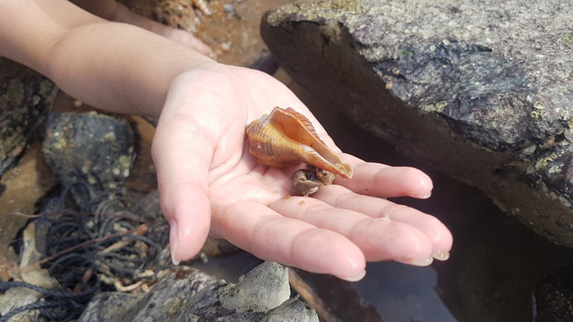 Ở rặng đá ven biển có rất nhiều ốc sống theo dòng chảy của biển trôi vào và mắc cạn