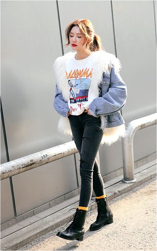 Quần jeans cạp cao và áo khoác rộng kiểu bomber được khuyên dùng để cảm giác chân bạn dài hơn và người không bị quá gầy gò. Thêm một vài món phụ kiện bắt mắt và cách trang điểm nhấn nhá vào đôi mắt sẽ khiến set đồ tưởng chừng rất đỗi bình thường này trở nên thu hút hơn nhiều lần.