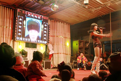 Hình thức múa thoát y mới xuất hiện tại các tang lễ ở vùng nông thôn Trung Quốc từ những năm 1990. Ảnh: Rex Features