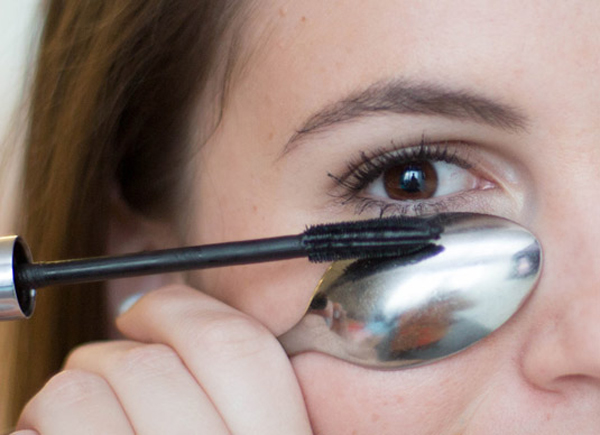 Nếu sợ sẽ làm mascara lem, bạn có thể dùng một chiếc thìa để lót.