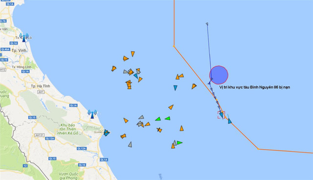 Vị trí tàu Bình Nguyên 86 bị nạn trên biển