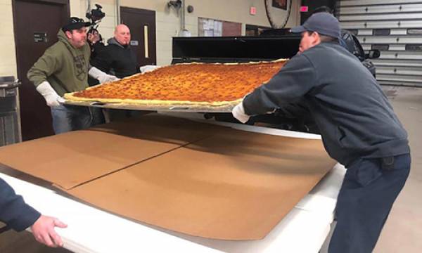 Các đầu bếp ở bang Michigan, Mỹ đã nướng chiếc bánh pizza nặng gần 20 kg cho một sở cứu hỏa địa phương. Họ đang chờ được công nhận chiếc bánh của mình là chiếc bánh pizza giao hàng lớn nhất thế giới.