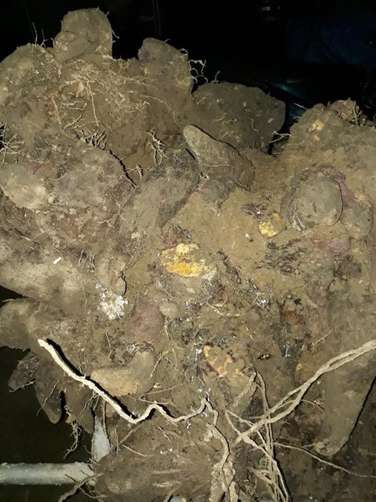 Trong lúc đang tiến hành thu hoạch thì bất ngờ anh đào được một củ khoai vạc lớn chưa từng thấy, nặng gần 110 kg. Thân củ khoai có nhiều nhánh xòe ra như một gốc cây cổ thụ.
