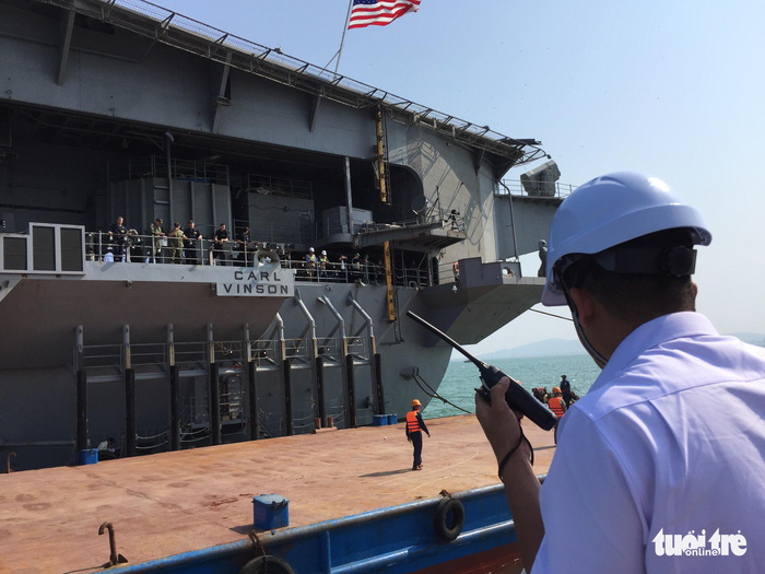 Thông tin của PV Tuổi Trẻ Online từ hiện trường cho biết tàu sân bay USS Carl Vinson đang ở trong khu vực vịnh Đà Nẵng.