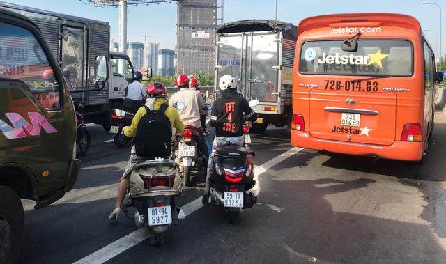 Vụ việc gây hỗn loạn giao thông trên đường dẫn cao tốc vào giờ cao điểm.