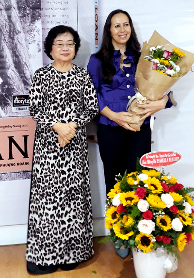 Nguyên Phó Chủ tịch nước Trương Mỹ Hoa (trái) chia sẻ sự đồng cảm với câu chuyện của bà Loan trong cuốn sách của Isabelle Müller, tại buổi giới thiệu sách ở TP HCM sáng 7/3. "Bà Loan là một phụ nữ bình thường nhưng đã làm được những điều phi thường", bà Trương Mỹ Hoa nhận xét. Ảnh: Huệ Nguyễn.