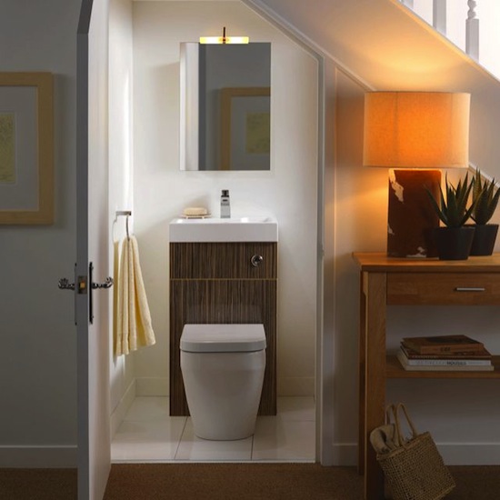 Thông thường, đối với nhà cao tầng, nhiều gia đình thường đặt vệ sinh ở vị trí gầm cầu thang dưới tầng 1 làm khu vực vệ sinh phụ, vị trí này kín đáo lại tiết kiệm được diện tích sử dụng cho ngôi nhà.