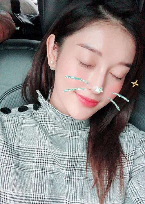 Huyền My nhiều lần khoe da mộc rạng rỡ không cần kem nền.