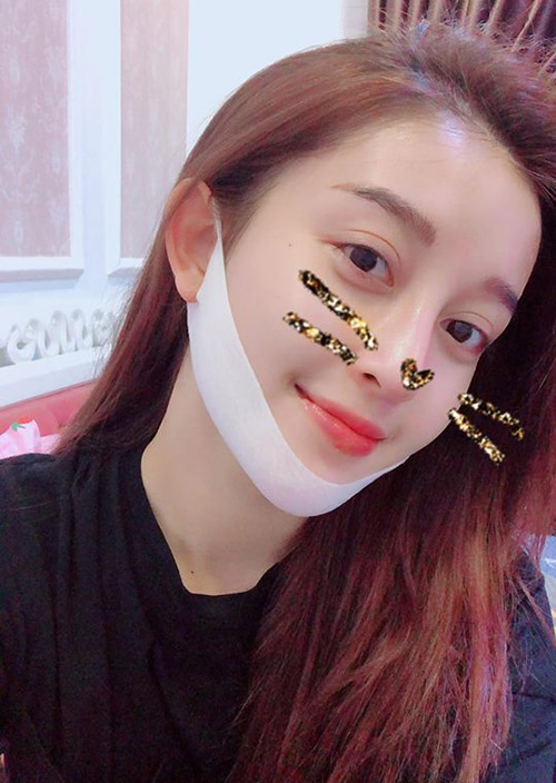 Khi bôi kem dưỡng sau serum, cô mix thêm 2 giọt dầu dưỡng để tăng khả năng cấp ẩm. Để hoàn thiện phần chăm sóc da, người đẹp phết một lớp mặt nạ ngủ giúp da "no" nước ngay cả khi đang say giấc.