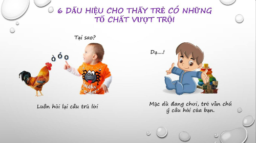 6 dấu hiệu cho thấy trẻ có tố chất vượt trội được vietbf chia sẻ dưới đây. Con bạn khôn khéo, có tố chất lãnh đạo và trí tuệ vượt trội nếu có 4 trong 6 dấu hiệu này. Mọi đứa trẻ đều là thiên tài, chỉ là bạn có biết cách để cho con phát triển toàn diện hay không.