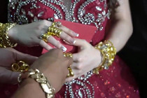 Ngày 14/3, mạng xã hội lan truyền nhiều video ghi cảnh cô dâu được trao tặng số vàng "khủng" trong đám cưới ở Cà Mau. Trong video, cô dâu chú rể được người thân, bạn bè trao tặng nhiều vàng đến mức trĩu cổ và đeo kín cả hai tay. Theo chia sẻ, cô dâu chú rể đang sống ở Phú Tân, Cà Mau.