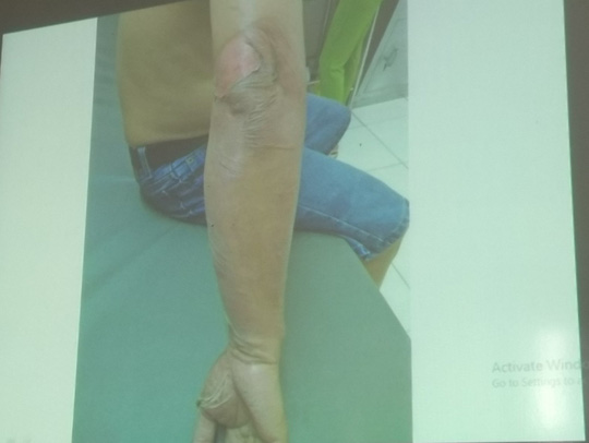Cánh tay anh cũng bị lột da nặng, tổng diện tích bỏng là 10% - Ảnh do bệnh viện cung cấp
