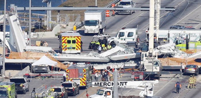 Theo lực lượng cứu hỏa hạt Miami-Dade, vụ tai nạn xảy ra khi có người trên cầu và một số chiếc xe dưới gầm cầu. Các nhân viên khẩn cấp cùng với chó nghiệp vụ đang tìm kiếm những người sống sót bị mắc kẹt trong đống đổ nát và trong những chiếc xe bị nghiền nát trên một trong những con đường bận rộn nhất Nam Florida.