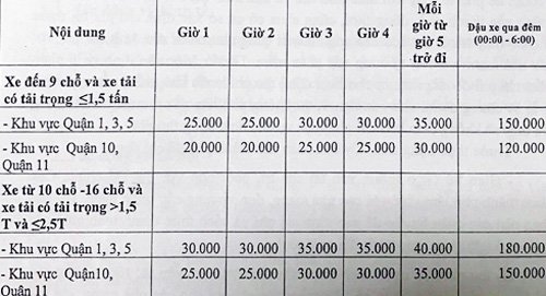 HĐND TP.HCM cũng đồng ý với tờ trình của Sở GTVT TP.HCM không thu phí đậu xe qua đêm (từ 0h - 6h). Tùy tình hình giao thông của một số tuyến đường mà quy định thời gian đậu xe cụ thể.