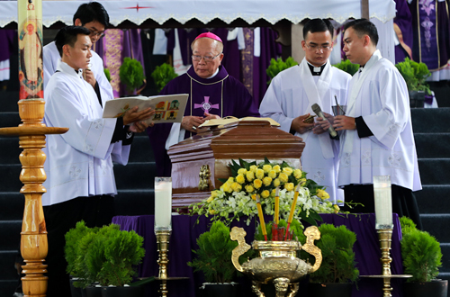 Sáng nay 17/3, hàng nghìn giáo dân tập trung về Trung tâm mục vụ của giáo phận trên đường Tôn Đức Thắng (quận 1, TP HCM) dự thánh lễ an táng Đức Tổng giám mục Phaolô Bùi Văn Đọc.