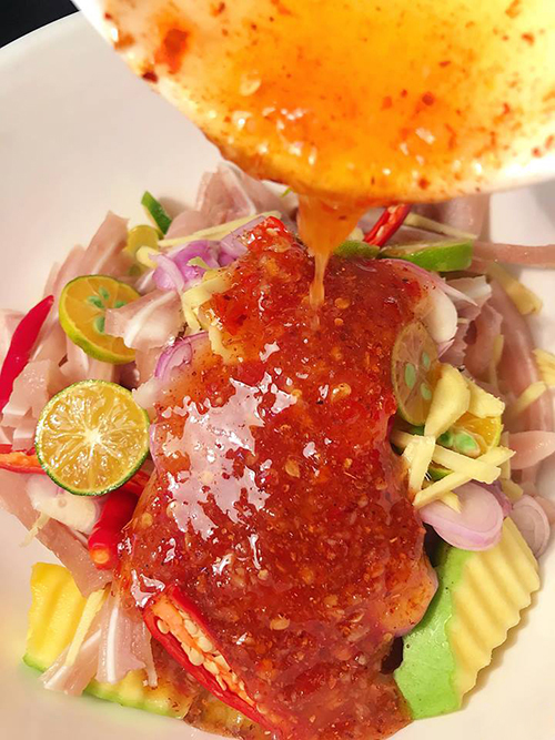 Tai lợn trộn sốt ớt chua ngọt thành phẩm.