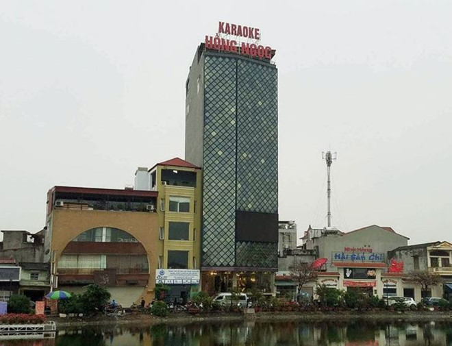 Quán karaoke Hồng Ngọc, nơi phát hiện hàng chục khách đang phê thuốc. Ảnh: Tiền Phong