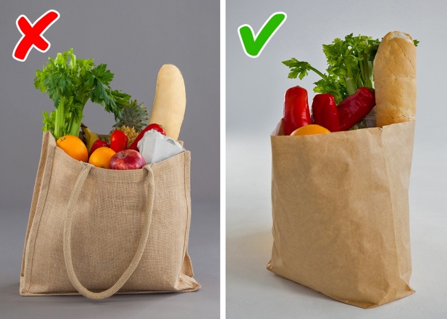 Một túi được sử dụng nhiều lần có rất nhiều vi trùng trên nó. Nếu bạn mua thịt sống trong túi (ngay cả khi nó đã được đóng gói), rất có thể là vi khuẩn sẽ lây lan trên các sản phẩm khác, đặc biệt là trái cây và rau quả. Giải pháp là sử dụng một túi dùng một lần hoặc một túi đựng quần áo mà bạn sẽ phải rửa mỗi lần.