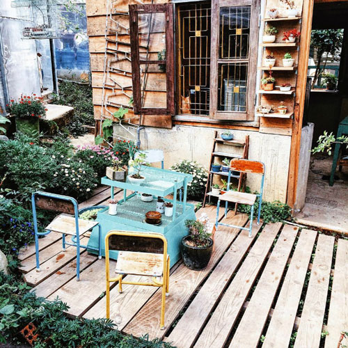 Chỉ bấy nhiêu thôi cũng đủ muốn người ta muốn ghé qua để chính mình trải nghiệm cảm giác "tự nhiên như ở nhà" hay tìm lại "tuổi thanh xuân" đã qua. Quán có thiết kế xinh xắn với nhiều chậu cây nhỏ, một khu vườn be bé, những tán cây dây leo bên hiên nhà, khung cửa sổ cũ kỹ với tấm rèm hoa nhí đáng yêu. Menu được viết bằng tay, đi kèm với nhiều lời nhắn nhủ dễ thương của chủ quán dành cho những vị khách cũng rất đặc biệt của mình.