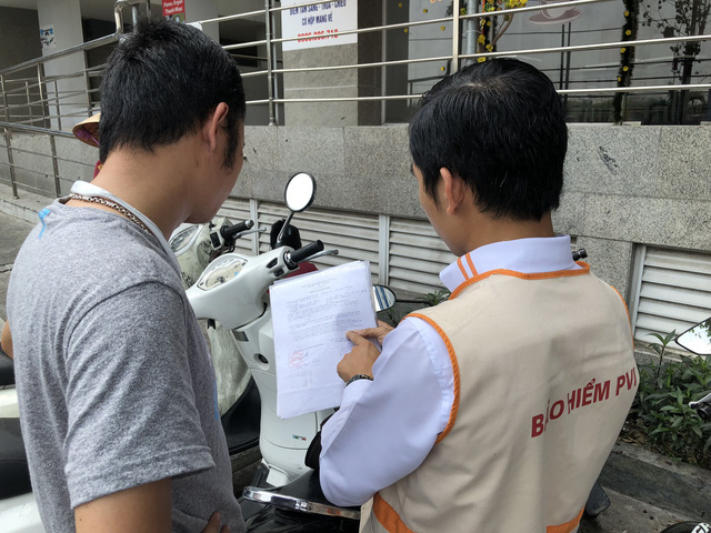 Đại diện bảo hiểm hướng dẫn người dân kê khai để được hỗ trợ bồi thường