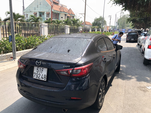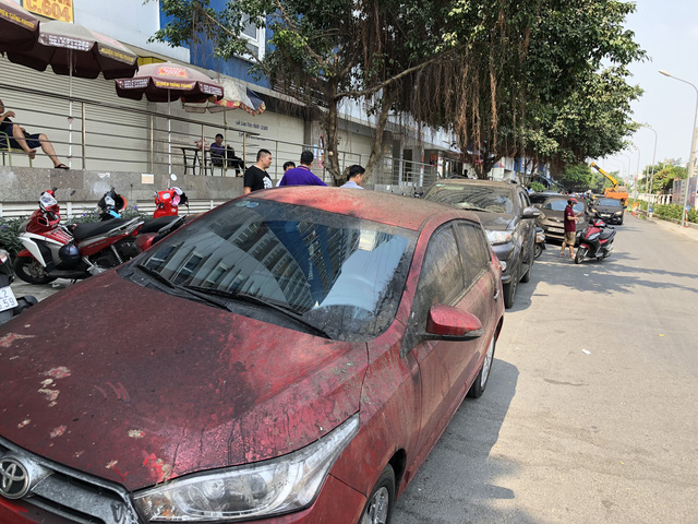 Bụi đen phủ kín những chiếc ô tô sau khi được đưa ra khỏi tầng hầm chung cư