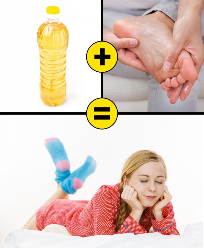 Làm sạch bàn chân, bôi một lớp dầu thực vật tự nhiên như dầu olive sau đó mang tất vào và để qua đêm. Nên làm hằng ngày trước khi đi ngủ.