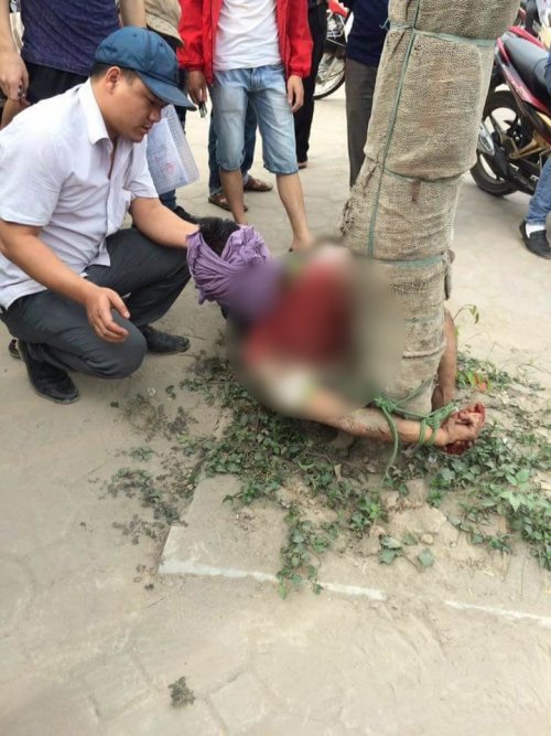 Chiều qua 29/3 vào khoảng 16h, một nam thanh niên có biểu hiện bất thường, chân tay múa may, miệng nói lảm nhảm xuất hiện tại khu vực cầu Tó, xã Thanh Liệt, huyện Thanh Trì, Hà Nội. Sau đó anh ta liên tiếp đâm đầu vào ô tô rồi lại tự đâm đầu xuống đường khiến người dân bắt rồi trói vào gốc cây.