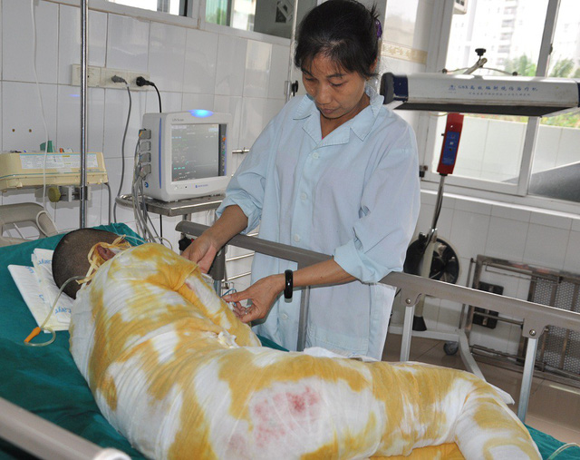 Thật thương tâm khi nhìn cảnh cô gái đang nằm viện cấp cứu. Cô bị bỏng đến 70% cơ thể với tiên lượng xấu. Mẹ cô khóc ròng vì thương con...