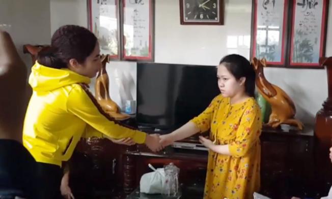 Sau khi xin lỗi cô H., xin lỗi gia đình hai bên nội ngoại của cô H., bà Nghĩa cũng bắt tay cô H. Cô H. chấp nhận lời xin lỗi và bắt tay phụ huynh Nghĩa. Đại diện gia đình cô H. cho biết trước đó giữa hai bên đã có bản thỏa thuận về bồi thường khi cô H. nhập viện điều trị.