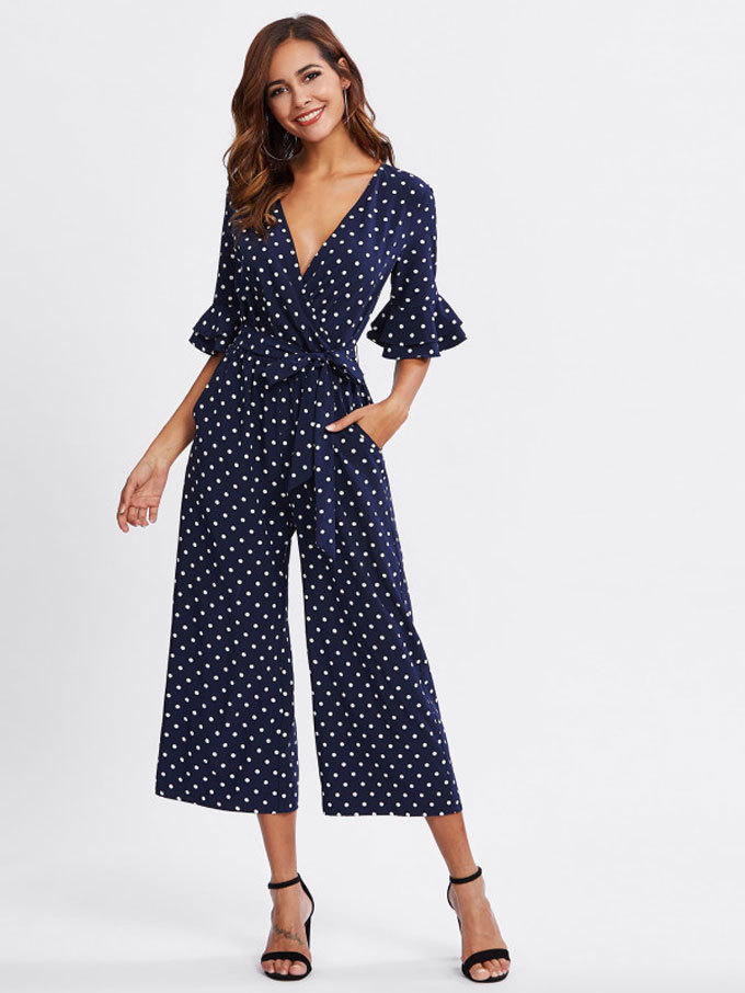 Jumpsuit họa tiết chấm bi cổ điển hay hoa nhí vintage là lựa chọn hoàn hảo bạn nên tham khảo trong hè năm nay. Mẫu jumpsuit với phần tay cách điệu của Shein có giá hơn 30 USD (hơn 700 nghìn đồng).