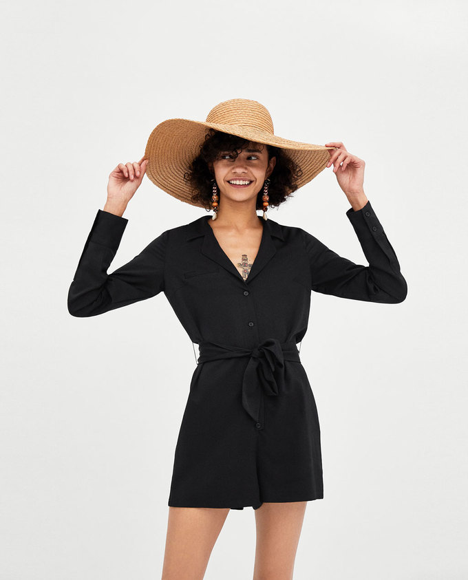 Thiết kế có kèm đai lưng sẽ giúp trang phục bớt đơn điệu và cũng là chiêu đắc lực để bạn "ăn gian" chiều cao khi diện áo liền quần. Nếu ưa thích màu vàng mustard, bạn có thể tham khảo mẫu jumpsuit của Bershka với giá bán khoảng 700 nghìn đồng.