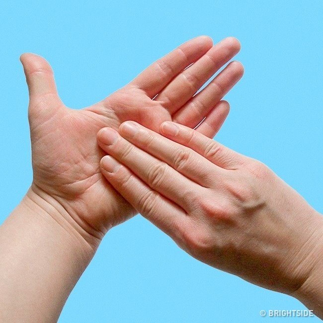 Ấn các ngón tay của bàn tay này vào giữa lòng bàn tay kia. Mát xa theo vòng tròn kết hợp hít thở sâu 3 lần. Các nhà phản xạ trị liệu cho biết lòng bàn tay là trung tâm của cảm giác và cảm xúc. Nghiên cứu cũng cho thấy rằng việc xoa bóp lòng bàn tay thường xuyên giúp bạn tránh khỏi cảm giác buồn nôn, căng thẳng, tiêu chảy và táo bón.