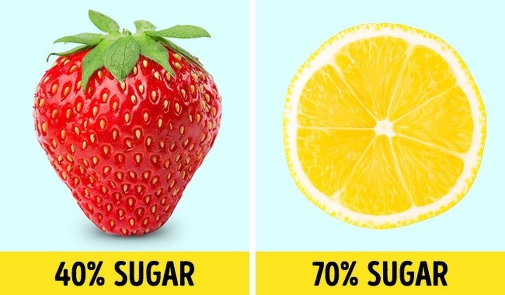 Chanh có nhiều đường hơn dâu tây. Một quả dâu tây chứa 40% đường trong khi chanh có tới 70% hàm lượng đường.