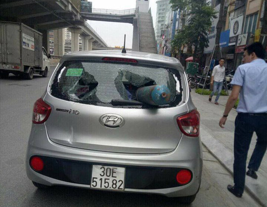 Qua trao đổi, Anh Bùi Văn T., một người ngồi trong chiếc xe ô tô gặp nạn, cho biết vào thời gian trên, anh gọi xe ô tô taxi công nghệ (Grabcar) lưu thông từ hướng Nguyễn Trãi-Hà Đông. Khi xe ô tô tới gần nhà ga trên đường Nguyễn Trãi thì nghe thấy một tiếng rầm lớn vang lên. "Tôi quay lại thì thấy một bình màu xanh đâm vỡ kính sau xuyên vào trong xe ô tô. Tôi bị một miếng kính vỡ cắt vào tay và bị chảy máu. Còn 2 người đi cùng tôi không rõ có việc gì không. Sau khi xảy ra sự việc, lái xe tấp và lề đường và báo công an. Sau đó, tôi nhảy ra khỏi xe nhưng không phát hiện được bình khí mầu xanh xuất phát từ chỗ nào. Một số người dân ở quanh khu vực cũng không rõ là bình khí trên từ đâu ra"-anh T. cho hay.