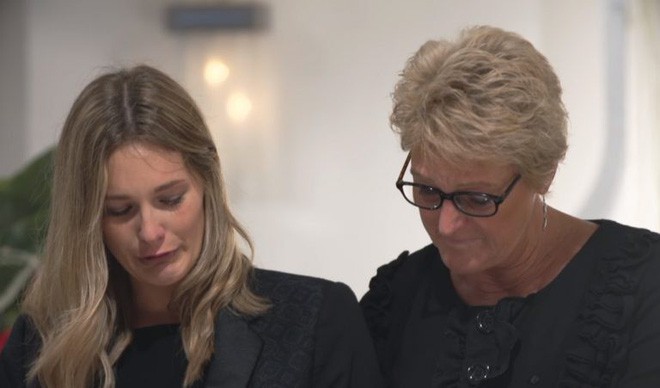 Giống như Mélanie, Brice cũng đã cố gắng lắm mới kiềm được nước mắt khi nhìn thấy mẹ và em gái anh đọc bài diễn văn đau thương khi anh qua đời.